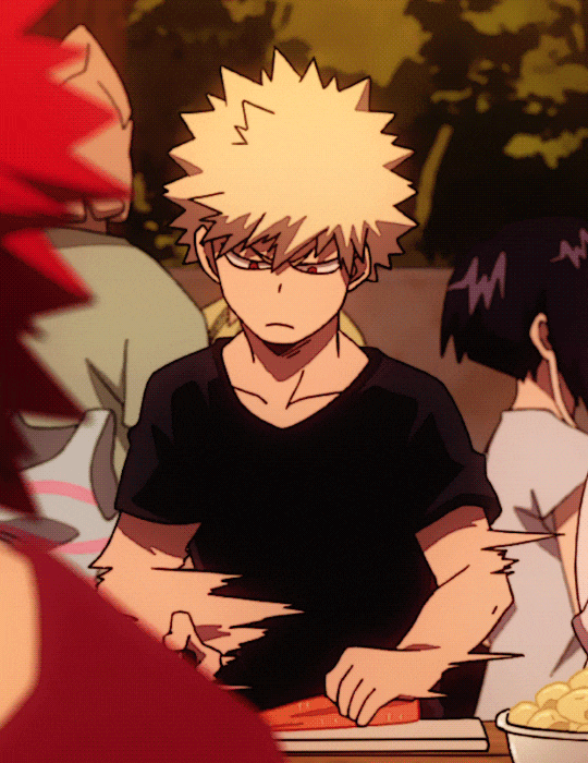 그렇게 모두가 재료를 다지고 불을 키며 하고 있었다. 히나카는 바쿠고 옆에서 똑같이 재료를 썰고 있었다.